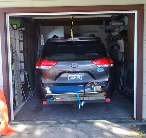 After the movers departed, I began the unpacking. I started with the garage because the stove was coming and as it was, nothing was getting through. Plus, I wanted to know if my van was going to fit or not. The garage is very narrow (1 car) so I had trouble finding a place for everything. A shed might be in order. After the garage was organized I was happy to learn the van does fit and I can get out. But I better not gain any more weight! Right now I have the luggage rack on the back in anticipation of the agility trial this weekend, and with it folded down the garage door would not close, so the van is outside for now.